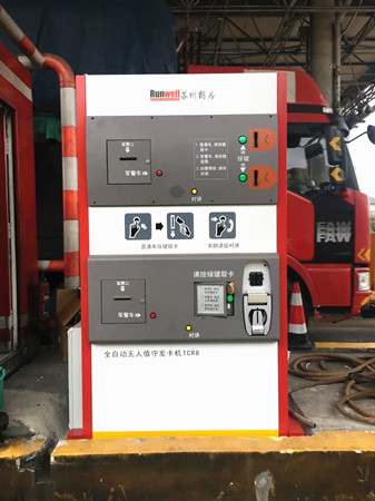 經(jīng)過對比、篩選,公司最終確定選用由蘇州朗為控制技術(shù)有限公司生產(chǎn)的TCR86-10型號的自動發(fā)卡機,該型號發(fā)卡機有上下兩個取卡區(qū)共四個卡口,分別提供給大小車司機使用,其中下卡區(qū)還配置了雙軸折疊式機械手作為發(fā)卡和送卡的延伸裝置。當司機按下取卡按鈕時,卡機會自動將卡傳送給機械手,機械手抓卡后,伸展臂長,將卡外送一段距離,方便用戶輕松取卡,當用戶取卡后該裝置又會自動縮回到面板中,以防刮擦。 該發(fā)卡機還有一個優(yōu)勢,內(nèi)部共設(shè)置四套發(fā)卡機構(gòu)(每套能容納250張卡),當某一套卡發(fā)完或出現(xiàn)故障時,可以自動切換到另一套工作,確保了系統(tǒng)具有充分的備份和容錯能力。另外,它還能兼容人工發(fā)卡,實現(xiàn)系統(tǒng)無縫對接。
