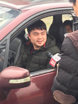 圖為臺州高速公路支付寶移動支付通行費(fèi)第一輛車的車主接受媒體采訪
