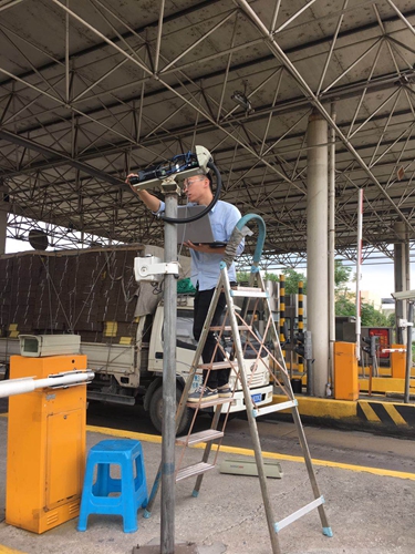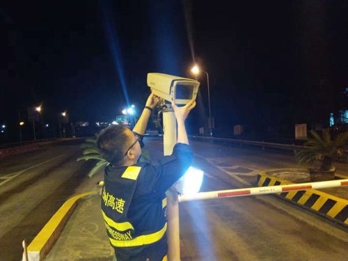 圖為工作人員在調(diào)整攝像頭角度 沿線車牌抓拍率的大幅提升,在短時間內(nèi)打了一個“翻身仗”,顛覆了之前在省排名落后的形象。 項寅曉