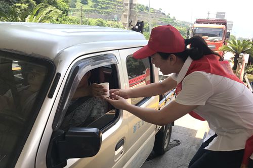 “大中午的,天氣熱,剛才還暈乎乎的想睡覺,現(xiàn)在喝了一杯冰冰涼的綠豆湯,整個人都舒暢了。”一位貨車師傅開心地說。 “沒想到,你們收費站還有這個服務(wù),這次我要出趟遠(yuǎn)門,說不定路上還真能用的上,謝謝呀!”一位接過礦泉水和風(fēng)油精的老師傅連聲道謝。 天氣雖炎熱,服務(wù)不“打烊”。 在活動中,志愿者們不顧自身大汗淋漓,仍身披橫幅,頭戴小紅帽,面帶微笑向途經(jīng)收費所的司機(jī)們遞上一杯杯綠豆湯、一瓶瓶礦泉水。同時,大家還不忘宣傳行車安全注意事項,提醒司機(jī)朋友在高溫酷暑時節(jié)多注意行車安全。