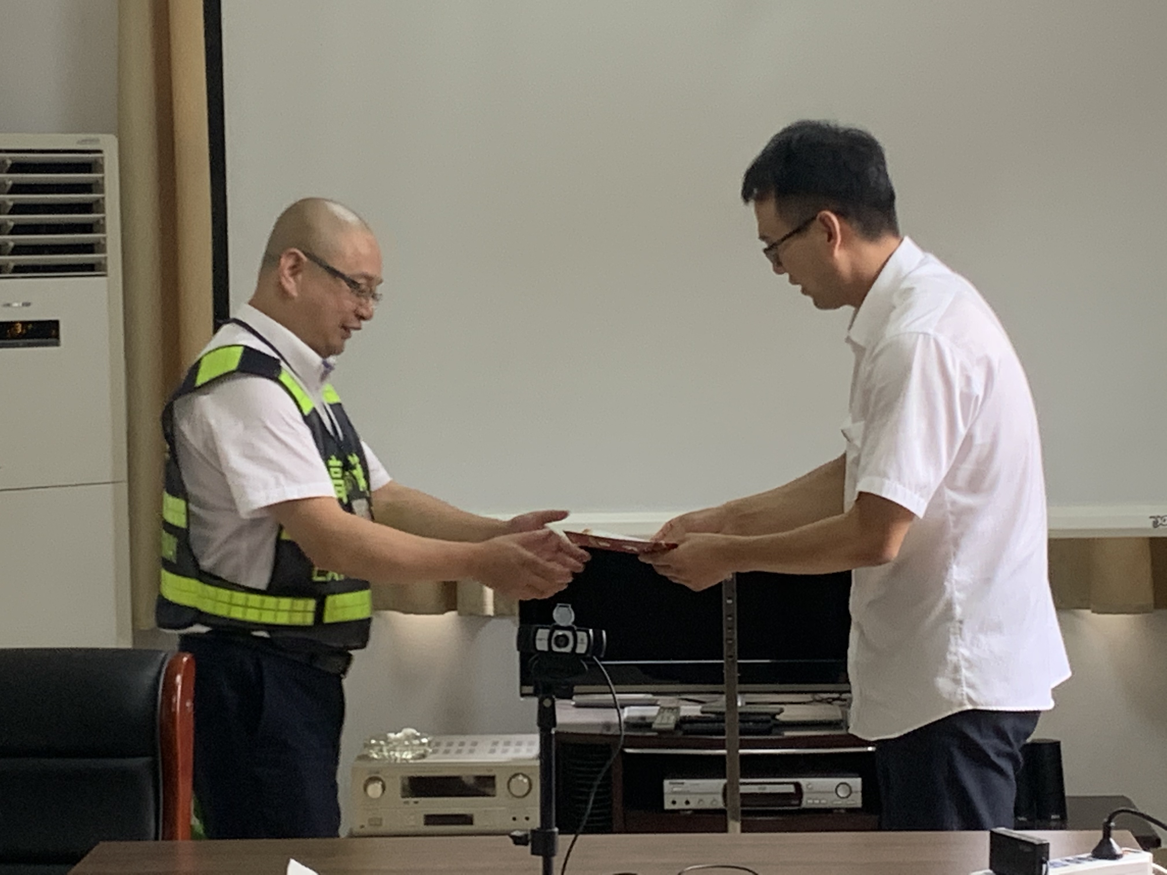 圖為黨支部書記向黨員贈(zèng)送生日賀卡