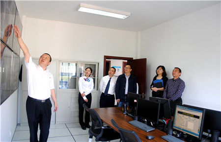 圖為檢查組在監(jiān)控室了解文明服務(wù)情況