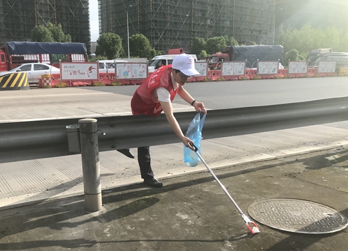 圖為志愿者開展“垃圾不落地”活動(dòng)