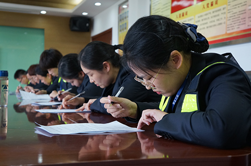圖為筆試現(xiàn)場 比賽分筆試和現(xiàn)場問答兩部分,內(nèi)容涉及收費(fèi)政策、業(yè)務(wù)知識、特情處理、內(nèi)控管理制度。筆試試題分成6份,參考人員隨機(jī)選題,各班組分批閉卷測試,最后取班組平均分進(jìn)行排名?,F(xiàn)場問答由必答題、搶答題、場外題等多個部分組成,采用累積計分、搶錯答錯扣分方式進(jìn)行。各組以班組為單位每班派出3名選手,分成四組,其他班組人員則參加場外搶答。 “開具高速公路電子發(fā)票可下載“票根”APP或登錄票根網(wǎng)的網(wǎng)址是?” “車道移動支付掃碼設(shè)備連接異常,導(dǎo)致無法支付,需要做哪些?”