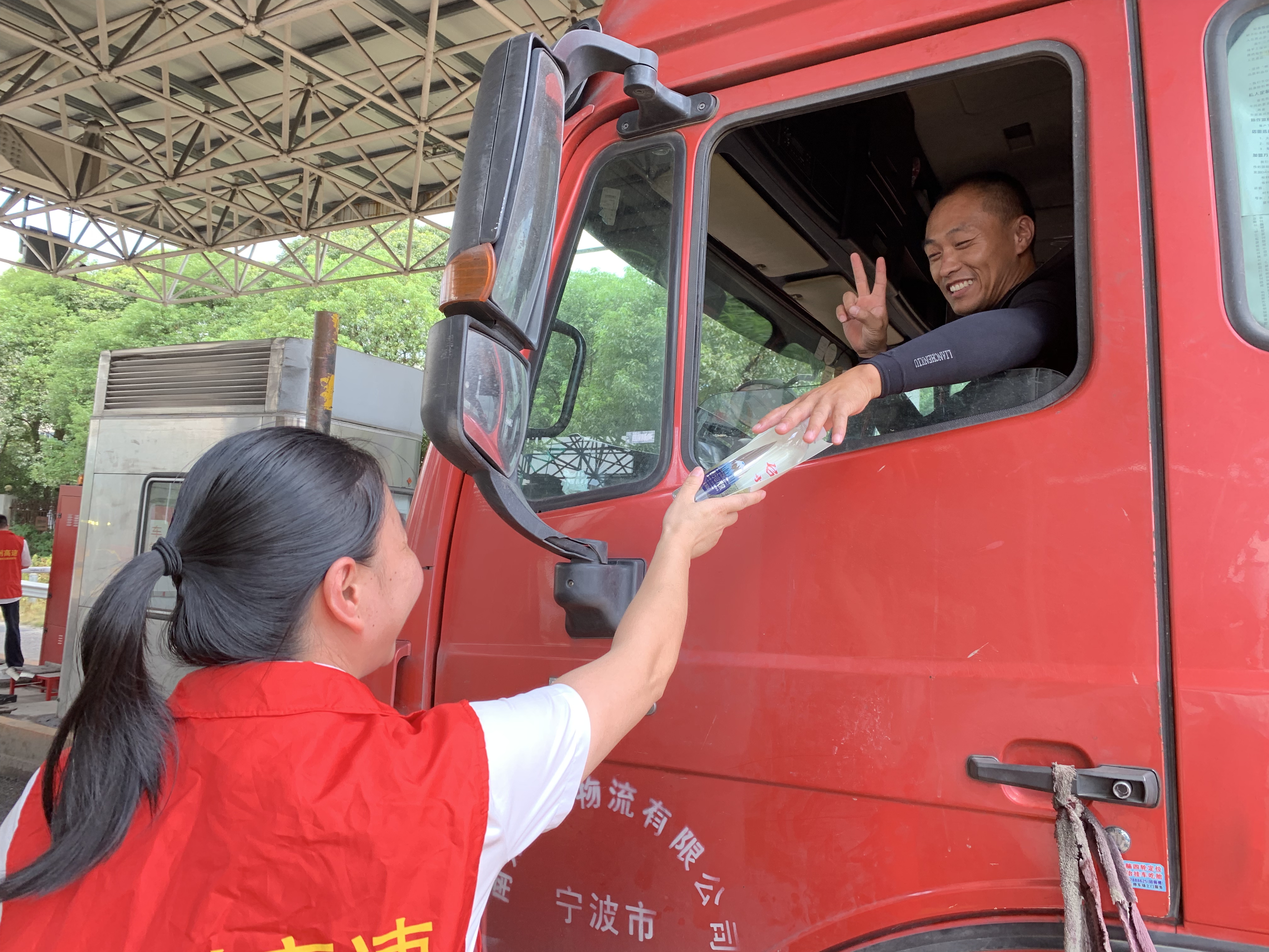 “師傅辛苦了,注意行車安全。”宣傳現(xiàn)場,烈日焦灼,志愿者們向過往的司乘人員發(fā)放宣傳冊,并遞上礦泉水,獲得過往司乘的肯定。