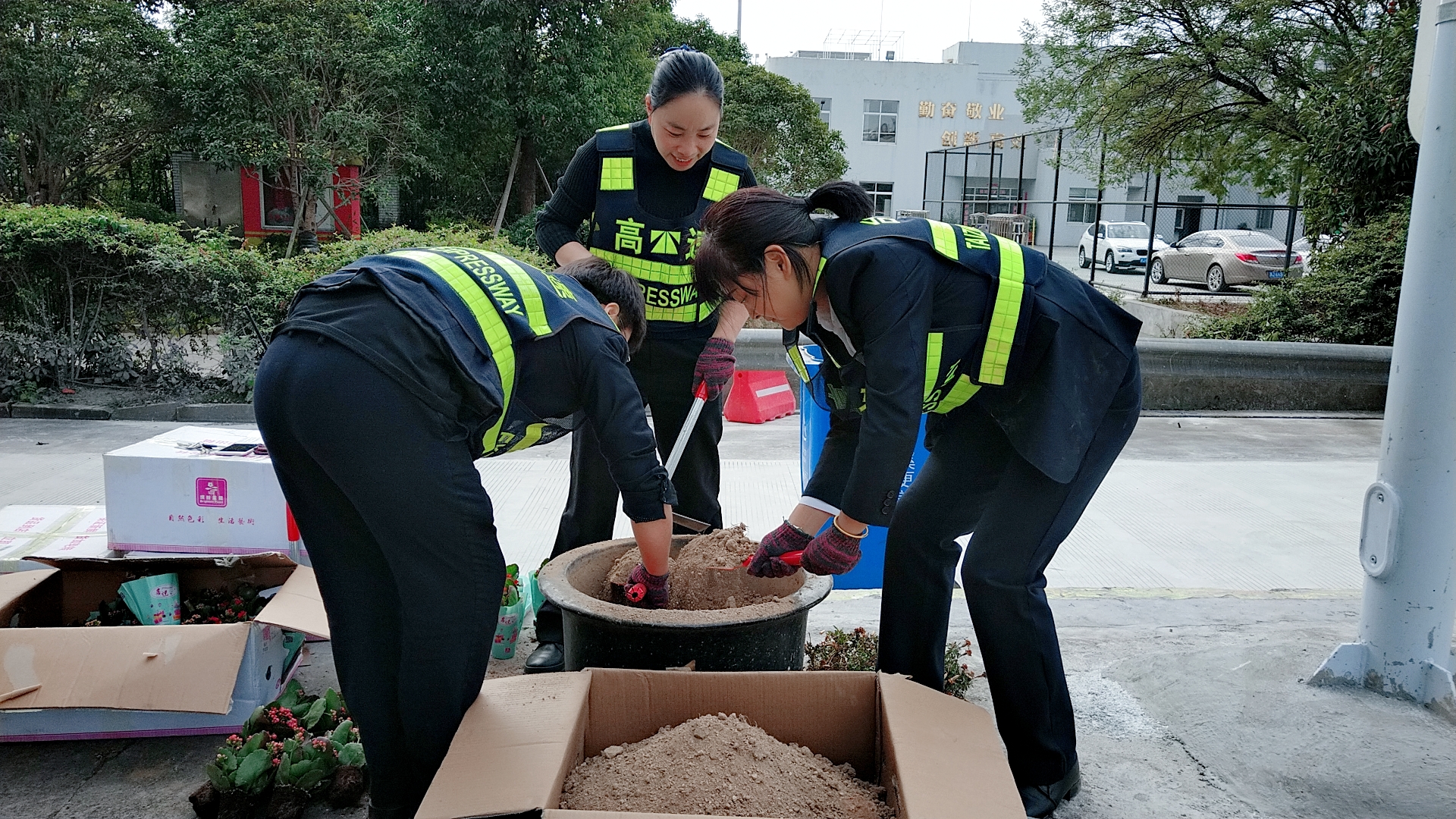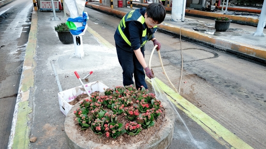 圖為栽種現(xiàn)場 現(xiàn)場,志愿者們身穿反光背心,拿著鋤頭、鐵鍬、水桶,帶著事先買來的小花苗,來到收費(fèi)區(qū)域的島頭開始栽花活動(dòng)。所領(lǐng)導(dǎo)班子成員身體力行,帶領(lǐng)大家投入到緊張的勞動(dòng)中。大家挽起衣袖,不怕臟、不怕累,有的松土、有的種花、有的填土,有的澆水……有序地將一棵棵花苗栽進(jìn)土壤。 通過大家的共同努力,經(jīng)過近4個(gè)小時(shí)的時(shí)間,400棵樹苗被栽進(jìn)了20多個(gè)大花盆中,美化了整個(gè)車道環(huán)境。 此次栽花活動(dòng)增強(qiáng)了大家的生態(tài)環(huán)保意識(shí)和綠化意識(shí),大家紛紛表示添花更要護(hù)花,要將綠化活動(dòng)意識(shí)長期付諸實(shí)踐,共同建設(shè)美麗溫嶺西收費(fèi)站。 鄭霞霞