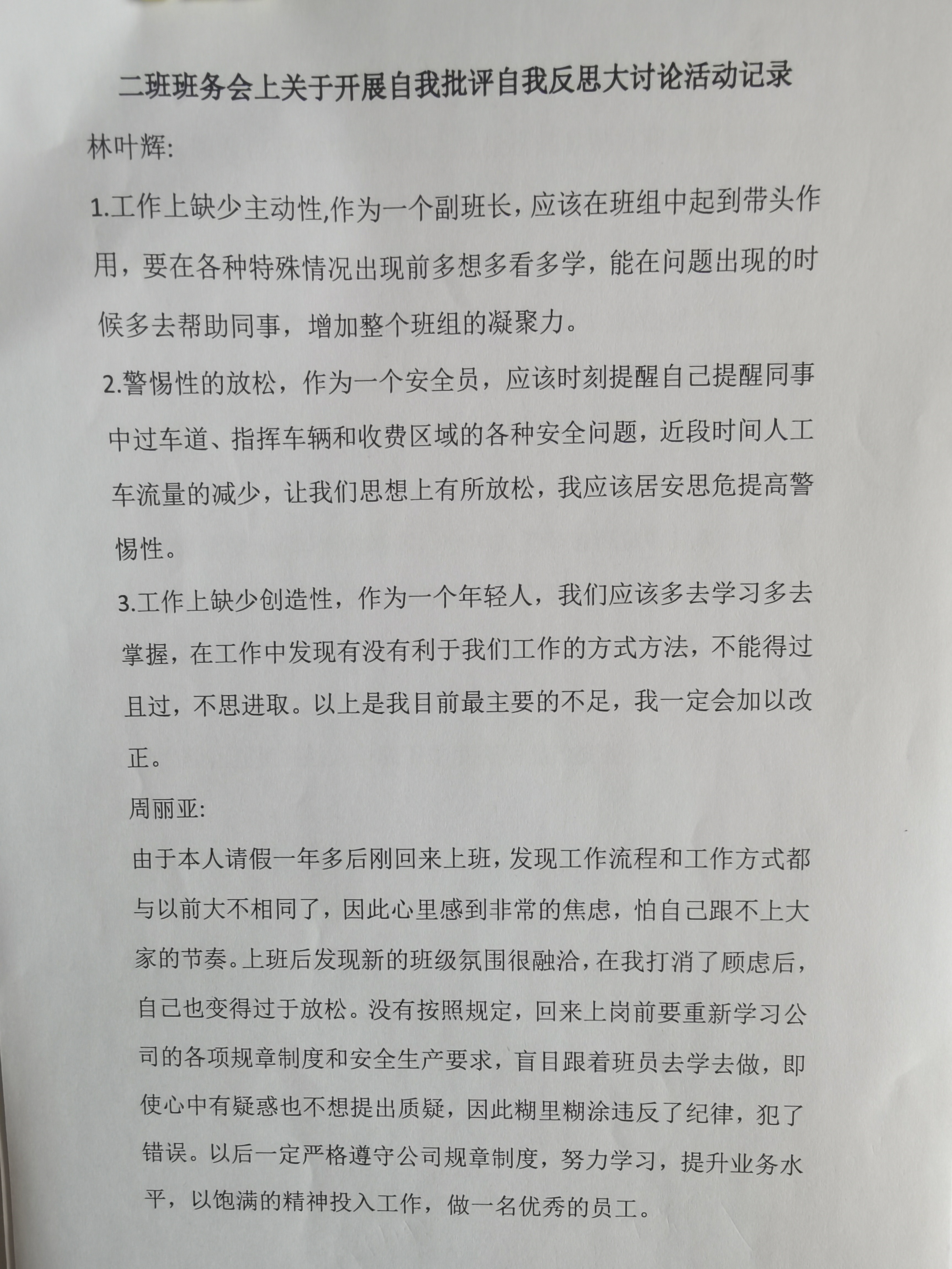 近日,溫嶺西收費(fèi)所以班組為單位,組織員工開展自我批評、自我反思大討論活動。