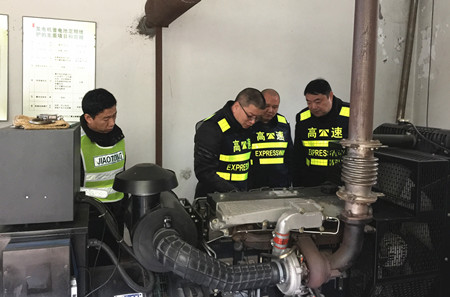 圖為檢查員在檢查配電房用電設(shè)備 檢查人員本著“防范在先、警惕在前”的原則,重點檢查了供配電房的供電設(shè)備運行狀況和消防設(shè)施。在供配電房,大家對環(huán)境衛(wèi)生、發(fā)電機組的機油油位、電柴油儲備量、水箱水位等逐一進(jìn)行檢查,并當(dāng)場啟動發(fā)電機組,查看是否能夠有效運行,并仔細(xì)檢查了消防設(shè)施生產(chǎn)日期、日常巡查記錄,消防水池儲存水量是否充足等,確保能夠正常使用。