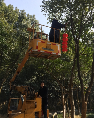 圖為黃土嶺隧道所員工合影 “往左往左,站臺(tái)再下降一點(diǎn)。”金先華麻利地操作著登高車(chē),“爬樹(shù)高手”金美忠自然地肩負(fù)起了懸掛燈籠的任務(wù),而個(gè)子高高的廖科則負(fù)責(zé)遞燈籠,其它人員有的負(fù)責(zé)將燈籠系好鐵絲,有的負(fù)責(zé)扛梯子,有的則不時(shí)地在遠(yuǎn)點(diǎn)兒的位置仔細(xì)看燈籠掛得正不正, 兩個(gè)燈籠高度是否一致,對(duì)聯(lián)是否對(duì)齊等等。大家有說(shuō)有笑,忙得不亦樂(lè)乎! 不一會(huì)兒工夫,喜慶的春聯(lián)貼起來(lái),紅紅的燈籠串掛起,管理所員工在一片喜氣的歡樂(lè)氛圍中共同期待著的新年的到來(lái)! 林 玲