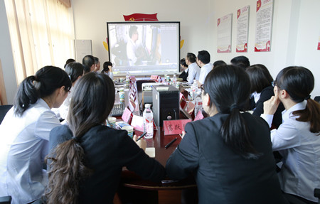 圖為觀看文明服務(wù)錄像