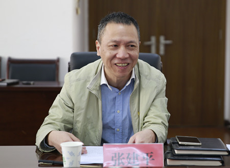 圖為集團(tuán)總經(jīng)理張建平介紹相關(guān)情況