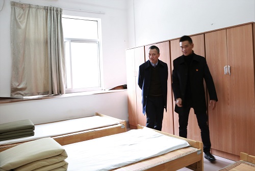 圖為集團總經(jīng)理張建平查看員工寢室