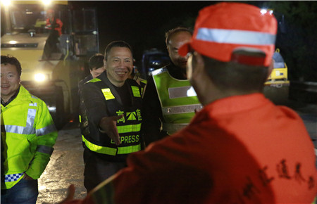 圖為集團(tuán)總經(jīng)理張建平夜訪養(yǎng)護(hù)施工一線
