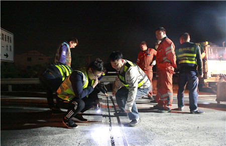 確定日期時間。施工前夕工程部負責人反復與交警、路政等部門溝通協(xié)調(diào),渠道暢通,最終達成一致意見,為盡量避免給公眾出行帶來影響,施工基本采用夜間斷流封道方式進行。施工過程中與高速交警、路政配合默契,封道都在規(guī)定時間內(nèi)開始結束,盡所能減輕施工對高速營運影響,保證路段通行能力。