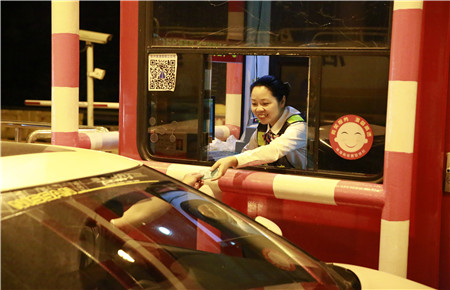 時間一分一秒地走著,收費員們在分流保暢中,堅持以飽滿的熱情,規(guī)范使用迎送手勢和文明用語,做到了“車輛增多不減質(zhì),文明服務(wù)不打折”。同時旁站人員加強關(guān)注過程車輛,不時為有需要的司乘人員提供指路問詢的通行服務(wù)。