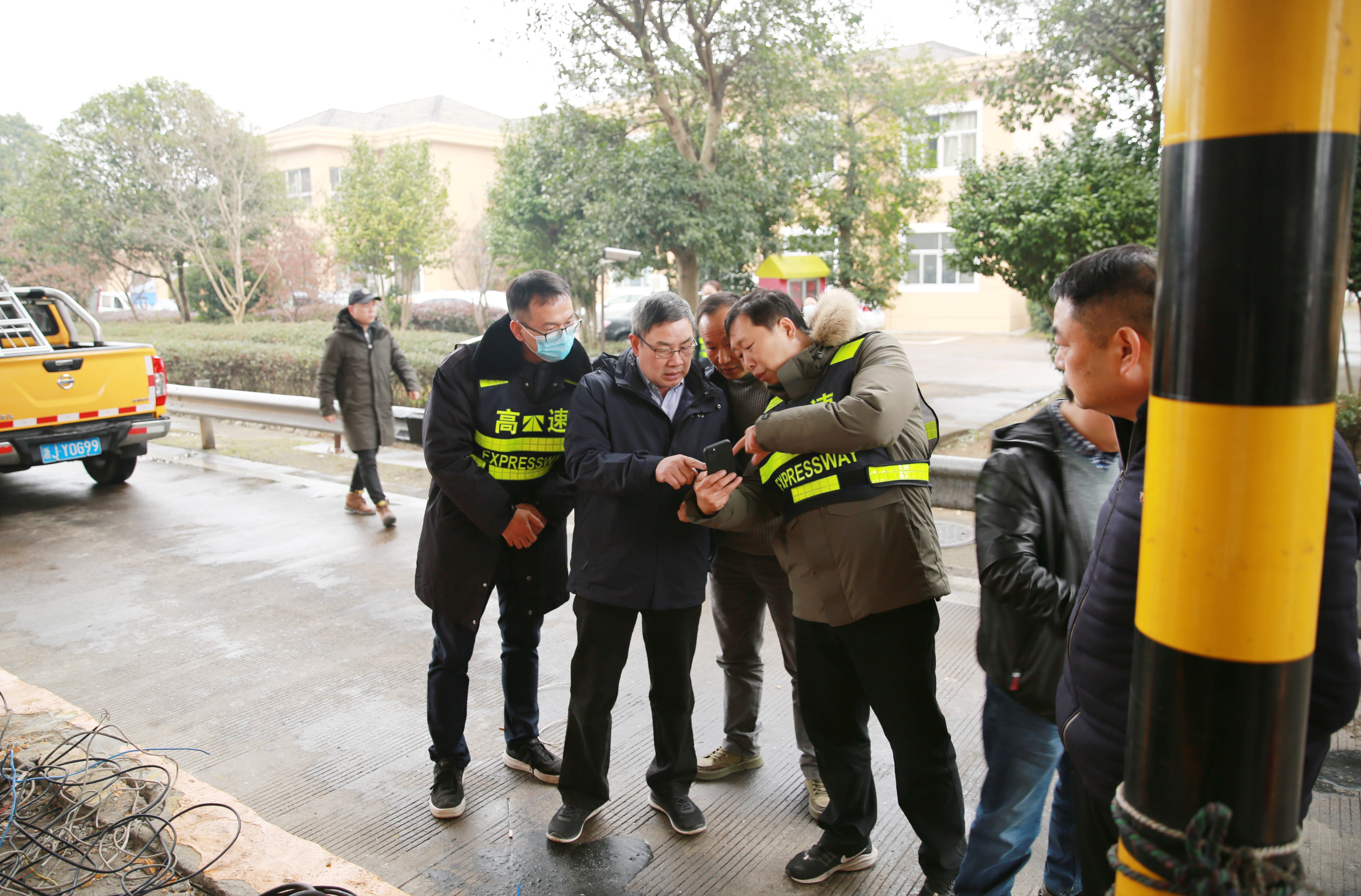 1月20日下午,臺州高速集團(tuán)黨委書記、董事長、總經(jīng)理陳文波趕往臨海南收費(fèi)所,現(xiàn)場指導(dǎo)1月19日深夜大貨車撞倒收費(fèi)崗?fù)さ暮罄m(xù)維修工作。集團(tuán)副總經(jīng)理章海峰,工程養(yǎng)護(hù)部、安保部負(fù)責(zé)人陪同。 事發(fā)現(xiàn)場,各種破損之物于昨晚深夜就已被清理干凈,被撞的1號崗?fù)の恢弥皇O侣懵兜母鞣N電線,以及被截?cái)嗟姆雷仓?。陳文波邊查看現(xiàn)場情況,邊同維養(yǎng)技術(shù)人員就如何加強(qiáng)收費(fèi)崗?fù)ぐ踩禂?shù)展開商討,并提出有關(guān)建議。