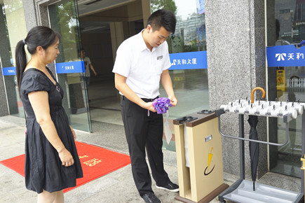 圖為物業(yè)公司工作人員幫助來客折傘 為提高物業(yè)管理質(zhì)量,營造安全、舒心的大樓環(huán)境,前段時(shí)間,辦公室根據(jù)大樓實(shí)際情況和業(yè)主需求,精心制定更換物業(yè)方案,擴(kuò)大選擇物業(yè)公司至全省范圍,深入調(diào)查了解有選擇意向的物業(yè)公司,并通過現(xiàn)場考察以及經(jīng)由天和大廈業(yè)委會開會決定,最終敲定浙師大印象物業(yè)管理有限公司負(fù)責(zé)本大樓物業(yè)管理。 5月1日,該物業(yè)公司正式入駐大樓,開啟了新物業(yè)管理改革風(fēng)潮,在服務(wù)質(zhì)量、人員形象、崗位職責(zé)、保潔等方面進(jìn)行了全面整改。對比原先的物業(yè)公司,他們不僅增加人員配置,還提高上崗人員形象、素質(zhì)要求,整體改善大樓一些臟、亂的環(huán)境,設(shè)立服務(wù)中心前臺、統(tǒng)一規(guī)范業(yè)主廣告位、在大廳放置沙發(fā)以接待訪客等,尤其在大樓正門入口一側(cè)設(shè)立形象崗,同時(shí)根據(jù)大樓用戶需要,分別在大樓A、B幢放置快遞柜,方便用戶取用物品。為了大樓安全,該物業(yè)公司還摸底各樓層工作人員名單、聯(lián)系方式、具體辦公地點(diǎn),以防陌生人員無故闖入大樓。 據(jù)該物業(yè)公司副總經(jīng)理霍正佩介紹,其公司要求形象崗上的工作人員要規(guī)范使用迎賓用語,同時(shí)服務(wù)中心前臺客服人員上班時(shí)間延長至晚8點(diǎn),以更好地滿足部分業(yè)主需求。 在此期間,公司辦公室一直持續(xù)跟進(jìn)物業(yè)交接、整改工作,共同完善物業(yè)管理,創(chuàng)造大樓新形象。在新物業(yè)入駐第二天,公司安保部便對安全生產(chǎn)工作情況進(jìn)行了全面檢查,并提出整改建議。 陳林偉