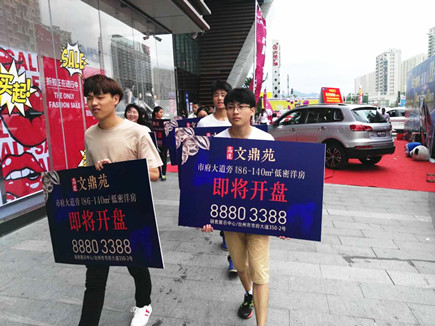 圖為文鼎苑銷售部人員在商場內(nèi)開展宣傳活動 在活動現(xiàn)場,參加人員一邊做陶藝,一邊詢問樓盤詳細(xì)情況,氣氛十分熱烈。同一時間,在萬達(dá)廣場和銀泰商場內(nèi),文鼎苑銷售部的帥哥美女們手持樓盤開盤廣告宣傳牌,他們一個個面帶笑容、朝氣蓬勃、專業(yè)細(xì)致地為前來咨詢的客戶講解樓盤的具體情況。宣傳隊伍所到之處,吸引了大批客戶的關(guān)注。 以上活動是文鼎苑項目首批開盤前期營銷推廣中的其中一個環(huán)節(jié)。為營造良好的銷售氛圍,在前期,仁和公司通過大型戶外廣告、微信公眾號實時更新、新聞媒介重點(diǎn)發(fā)布等,陸續(xù)進(jìn)行多方位媒體宣傳攻勢。同時,謀劃舉辦了“文鼎苑家風(fēng)征集活動”、立夏、母親節(jié)、“520與愛相約”、端午節(jié)、兒童節(jié)等節(jié)假日專題宣傳活動。此外,還安排了銷售人員在周末深入椒江拆遷區(qū)進(jìn)行拓客派單活動。 目前,高速房產(chǎn)集團(tuán)的員工們正戮力同心,奮力拼搏,為全力打響文鼎苑首期開盤炮而努力奮戰(zhàn)。 包啟曉