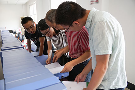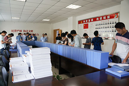 圖為省公路局檢查組檢查內(nèi)頁(yè)資料現(xiàn)場(chǎng)