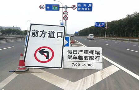 圖為岔口臨時(shí)限行指示牌