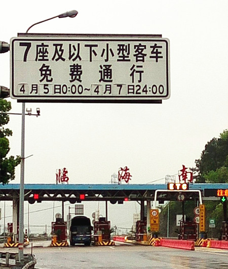 圖為免費(fèi)通行提示牌