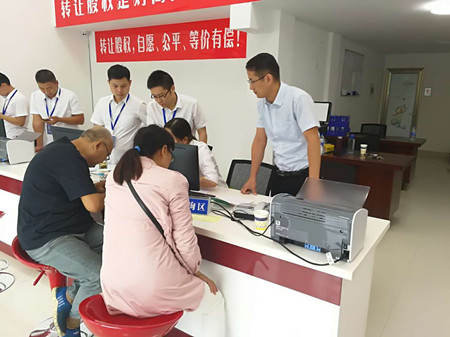 圖為集團副董事長、總經(jīng)理張建平在椒江收購點為股東服務(wù)