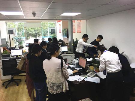 圖為椒江收購點陸陸續(xù)續(xù)有股東前來辦理轉讓手續(xù)