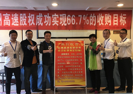 股權(quán)收購工作自啟動以來,市委、市政府高度重視,市直各部門和各縣(市、區(qū))政府大力支持,措施得力,領(lǐng)導(dǎo)小組辦公室精準(zhǔn)服務(wù),認(rèn)真落實各項舉措,臺州高速集團(tuán)精心籌備,宣傳深入有效。