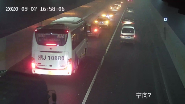 車子剛進入隧道,火眼金睛的中控員徐海源立即察覺,鎖定該畫面,經(jīng)過仔細辨認,該車沒有火光源,可能是車輛故障導(dǎo)致的。由于貨車不停地冒出濃煙,散發(fā)的濃煙彌漫在整個隧道里,造成隧道內(nèi)的車輛視線不清,人員呼吸困難,后方途經(jīng)車輛紛紛打開雙閃燈,或緩行、或停車、或避讓,一時間,交通秩序混亂,大量的車輛滯留在隧道里,而后方來車越來越多,情況越來越緊急。中控員見狀,第一時間向監(jiān)控中心匯報情況,監(jiān)控中心要求密切關(guān)注該輛車的行駛情況,同時,把該情況報告給執(zhí)勤隊長蔡星,他要求中控員打開寧向排風扇,正向排風,疏散濃煙,同時做好應(yīng)急準備工作。