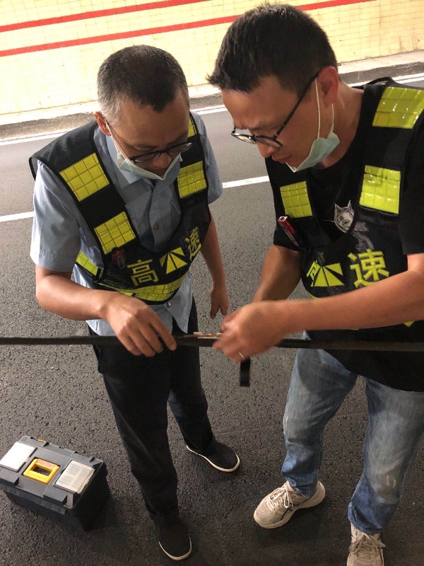 車流如潮的現(xiàn)場給管理所的保暢帶來了挑戰(zhàn)。面對雙節(jié)高峰,執(zhí)勤隊爭分奪秒分組進行有封閉主車道擺放安全防護;提醒來往車輛保持有效車距;查找受損電纜修復(fù);高空作業(yè)包扎脫落電纜。那一刻,他們手頂橋架背影,彎腰查線時的動作,無疑是高速最美麗的風(fēng)景。最后經(jīng)過三個小時的搶修,被拉掉一邊的橋架及電纜終于重新固定恢復(fù)原位。