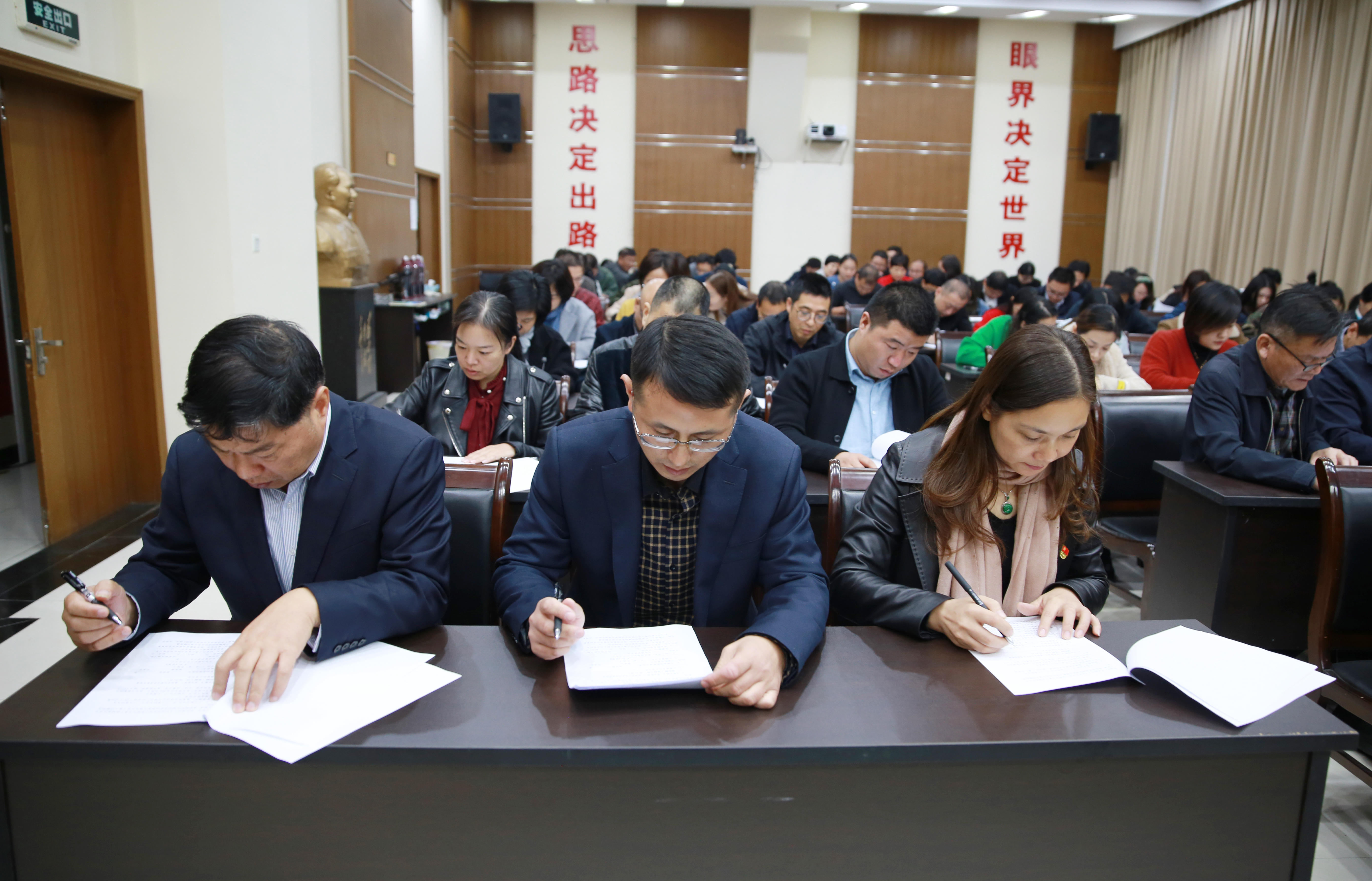 圖為測試現(xiàn)場 此次測試采取閉卷形式,分黨員和非黨員試題兩卷,測試范圍包括“不忘初心、牢記使命”主題教育、十九大報告及習近平新時代中國特色社會主義思想等知識。大樓近100名員工參加測試。 此次測試既是對學習效果的檢驗考核,又是對學習成果的鞏固提升,將進一步激發(fā)全體員工學習的主動性和積極性,使政治信念更加堅定、理論知識更加充沛、工作熱情更加高漲、行動更加積極務實,真正起到了以考促學、以考促記、以考促行的目的。大家紛紛表示要以此次知識測試為東風,鼓足干勁、學以致用,勇于擔當、忠誠履職,在平凡的崗位上干出優(yōu)異成績,努力開創(chuàng)各項工作新局面。 馮曉潔