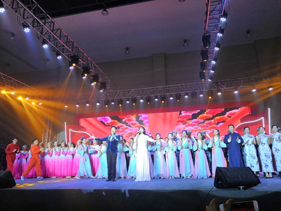 圖為《不忘初心》歌曲演唱現(xiàn)場 晚會上還有其他許多精彩的節(jié)目,讓現(xiàn)場觀眾連聲驚嘆,最后本次文藝晚會在一曲《不忘初心》的歌聲中結(jié)束。