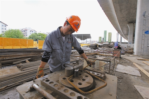 馬進(jìn)學(xué)告訴記者,在鋼筋工這么多道工序里,將加工好的半成品鋼筋通過彎曲機(jī)制作成型是一道需要細(xì)心和耐心俱備的工序,無(wú)論是加工時(shí)的站位還是彎曲點(diǎn)的選擇都是對(duì)一個(gè)鋼筋工技藝的考驗(yàn),所以工作的時(shí)候必須集中精神格外小心。
